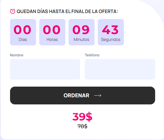 Para ordenar, completa un formulario rápido en el sitio y confirma tus detalles de envío por teléfono. Tu paquete discreto llega en una semana, con opciones de pago contra reembolso para mayor tranquilidad.