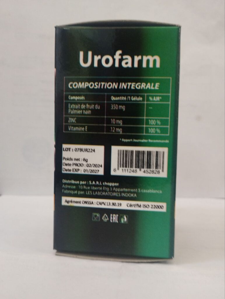 تركيبته الطبيعية كتقدم ليك فوائد صحية حقيقية دون المخاطرة بمواد كيماوية خردة. هو منتج لطيف على الجهاز ديالك وفي نفس الوقت كيعطي نتائج قوية وملموسة. إضافة Urofarm لروتينك اليومي ساهلة بزاف، ما عليك غير تتبع التعليمات المرفقة وتخلي المكونات العشبية تدير السحر ديالها.
